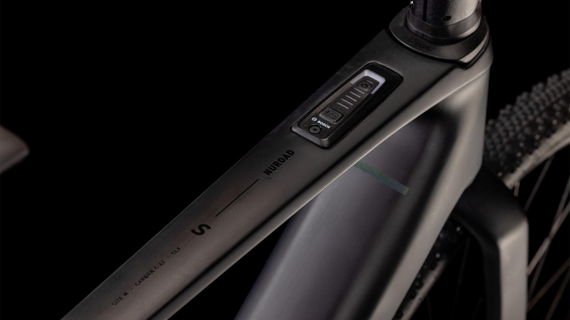 La forme se met au service de la fonction avec l’élégant cadre carbone du Nuroad Hybrid C:62. Bien sûr, il est très attrayant, avec son profil élégant et ses courbes organiques Mais, nous n’avons pas oublié la commodité, avec son débattement pour des pneus pouvant aller jusqu’à 50 mm, même en présence de garde-boue. Ou encore ses points de fixation pour porte-bagages à l’arrière et sur sa fourche tout en carbone, pour un maximum de polyvalence. L'unité de commande de son système d’entraînement Bosch est incorporée dans le tube supérieur, avec un léger déport de son cintre, et son cadre est compatible avec le système PowerMore pour booster de batterie de 250 Wh. Le collier de selle est caché, il dispose d’un guide de chaîne Direct Mount très léger, d'une interface de béquille Flatmount, d’un axe arrière Boost et d’une patte de dérailleur UDH. Nous reconnaissons avoir coché toutes les cases. C’est à vous de jouer...