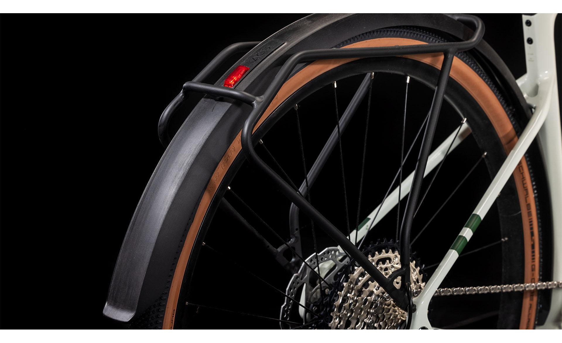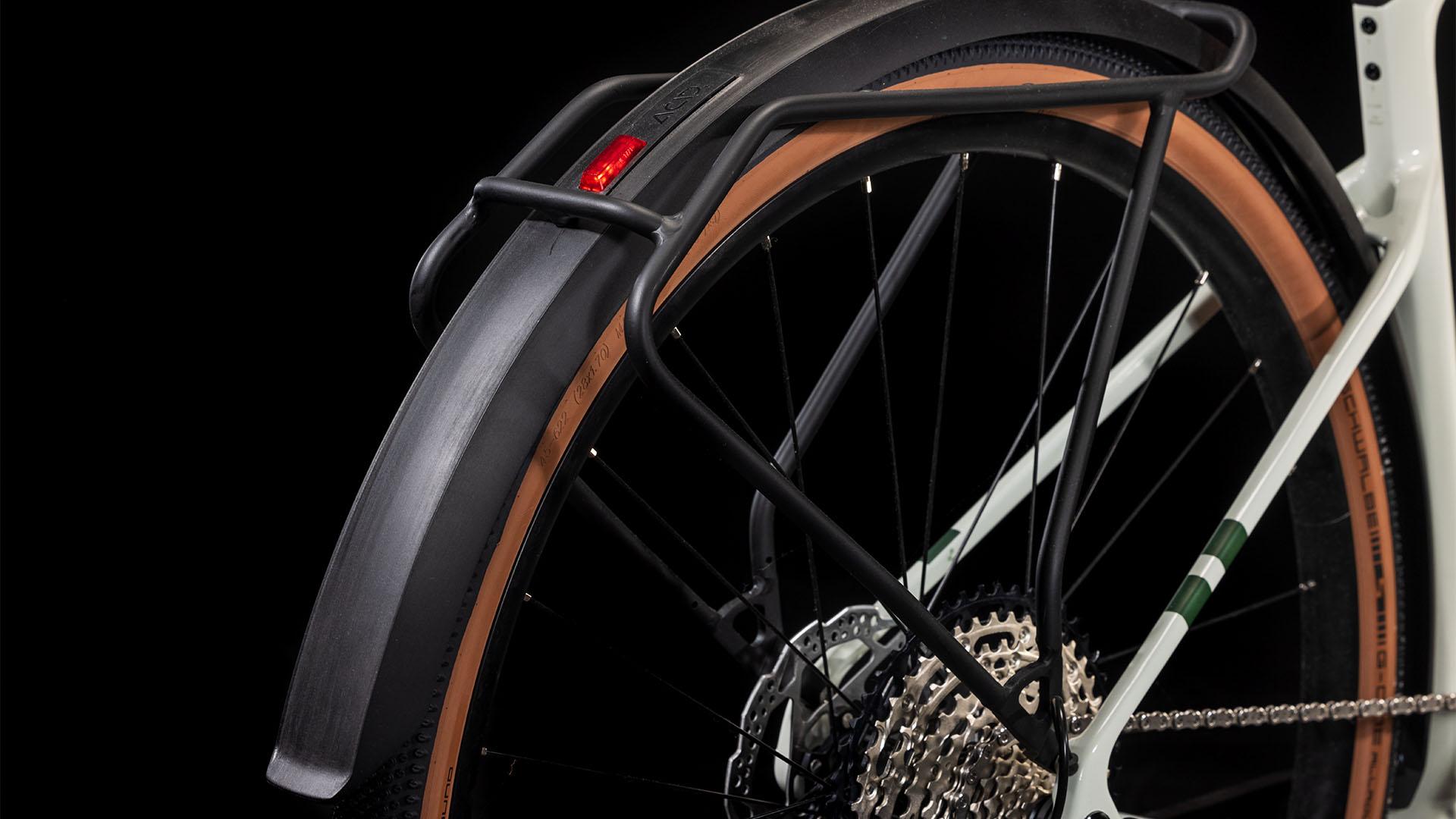 Concevoir un cadre réellement pratique ne se limite pas à fixer des garde-boue et un porte-bagages, même si cela fait partie des choses que nous avons faites. Le cadre élégamment sculpté du Nuroad Hybrid C:62 FE présente de nombreuses touches subtiles, telles que son aptitude à être équipé de pneus de 50 mm, même en présence de garde-boue. Sa fourche tout en carbone présente des supports de fixation pour garde-boue, nous l’avons équipé d’un guide de chaîne Direct Mount léger, d’une interface de béquille Flatmount, et sa base arrière est équipée d’un axe arrière Boost et d’une patte de dérailleur UDH. Pour ce qui est de son unité motrice Bosch, elle est compatible avec le booster PowerMore et permet donc de bénéficier d’une batterie de 250 Wh supplémentaire, tandis que l’unité de commande est soigneusement incorporée dans le tube supérieur, avec un léger déport sur le cintre. Nous avons soigné les détails, de sorte que vous puissiez vous concentrer sur vos coups de pédale.