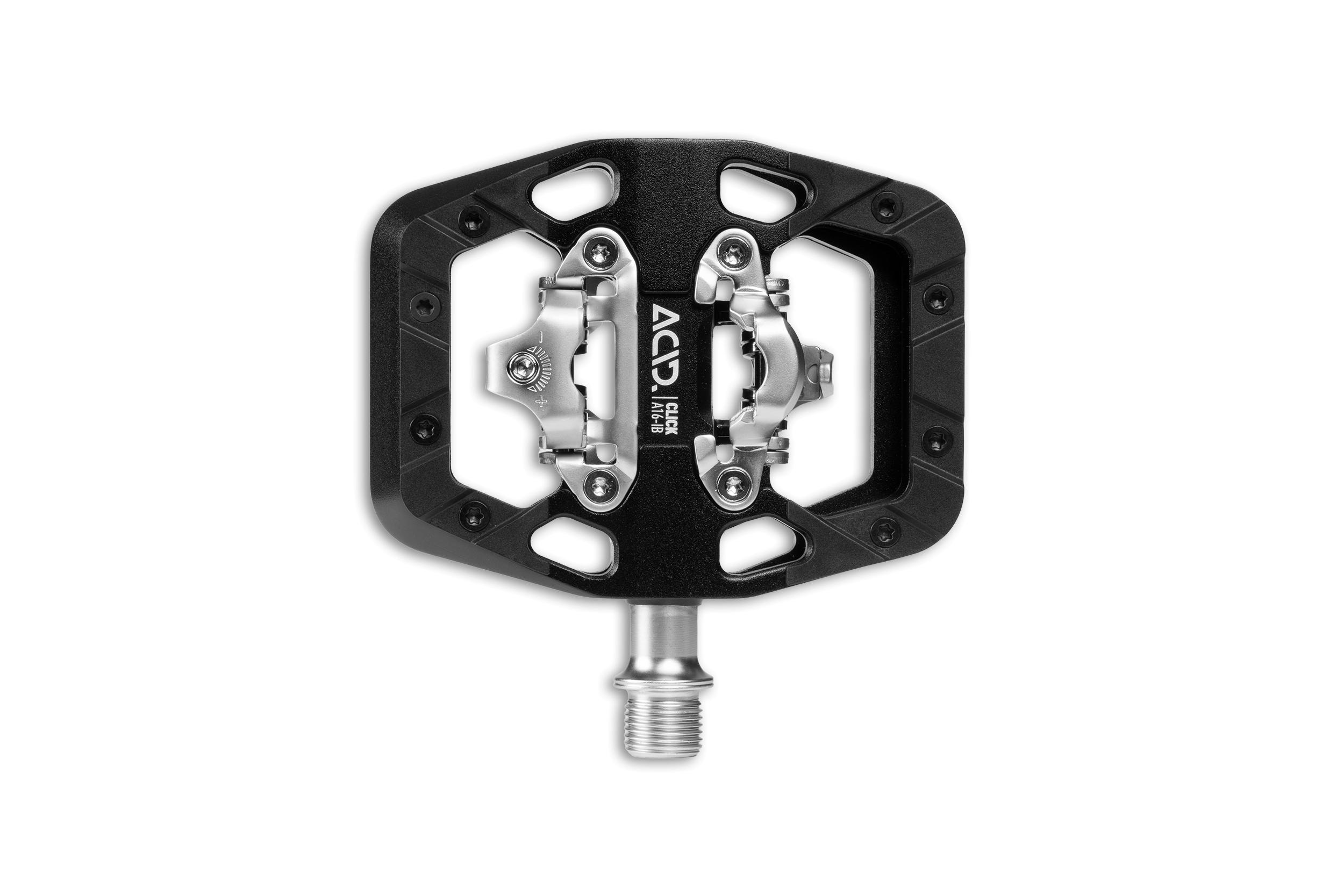 La pédale ACID CLICK A16-IB séduit par son corps en aluminium. Grâce à un mécanisme de clic compatible SPD des deux côtés, elle permet un enclenchement et un déclenchement rapides. De plus, sa grande surface d'appui offre un maintien supplémentaire. Avec un roulement industriel et un palier lisse par pédale ainsi qu'un axe CroMo robuste, elle séduit par sa longévité et son faible poids.