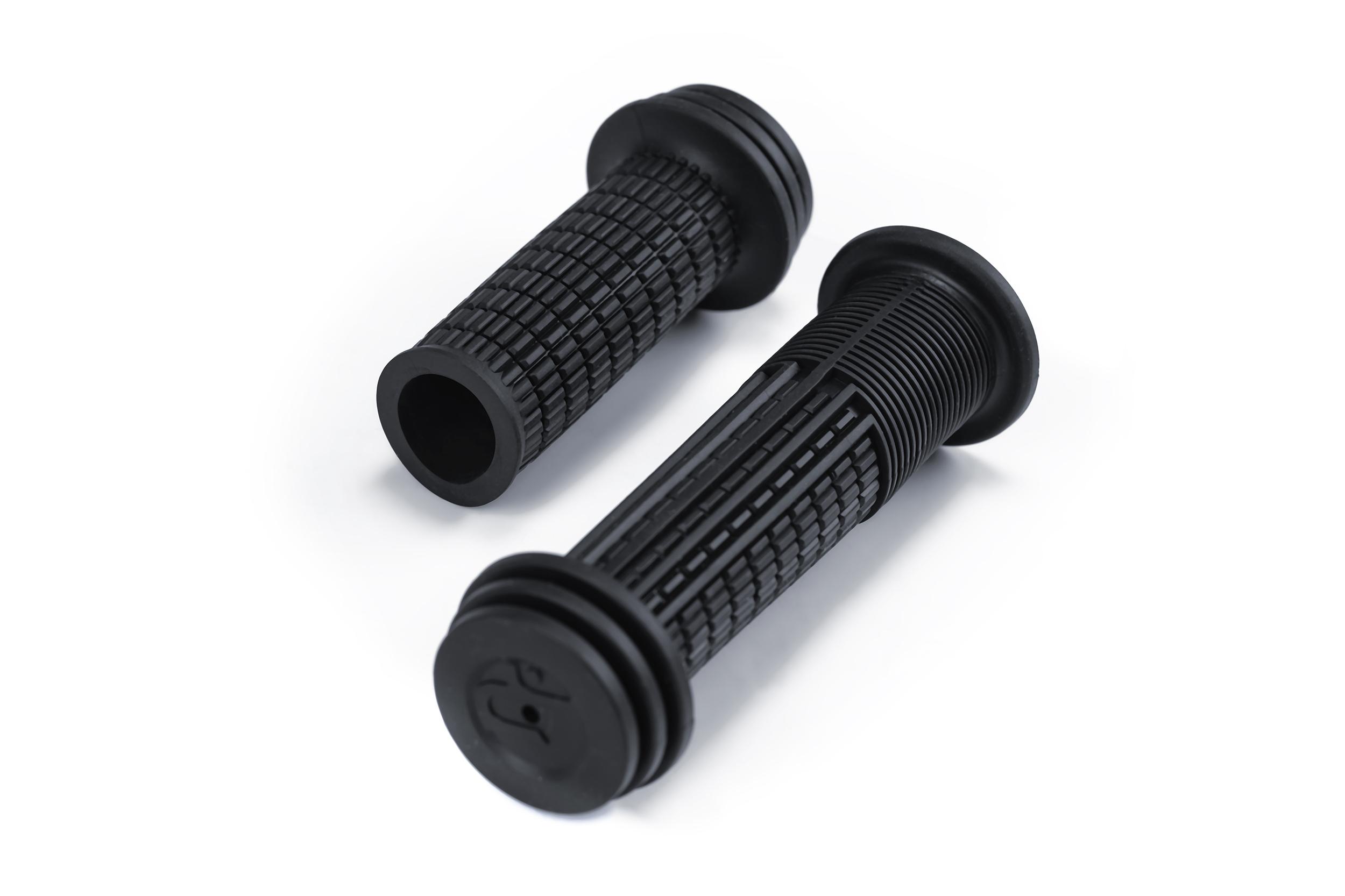 - Smaller outside diameter ergonomically adapted for kids hands; inside diameter fits 19 mm (external) diameter handlebars; grip shift compatible; fins for added pressure relief; finger grooves for a better hold; outer bumper; durable material