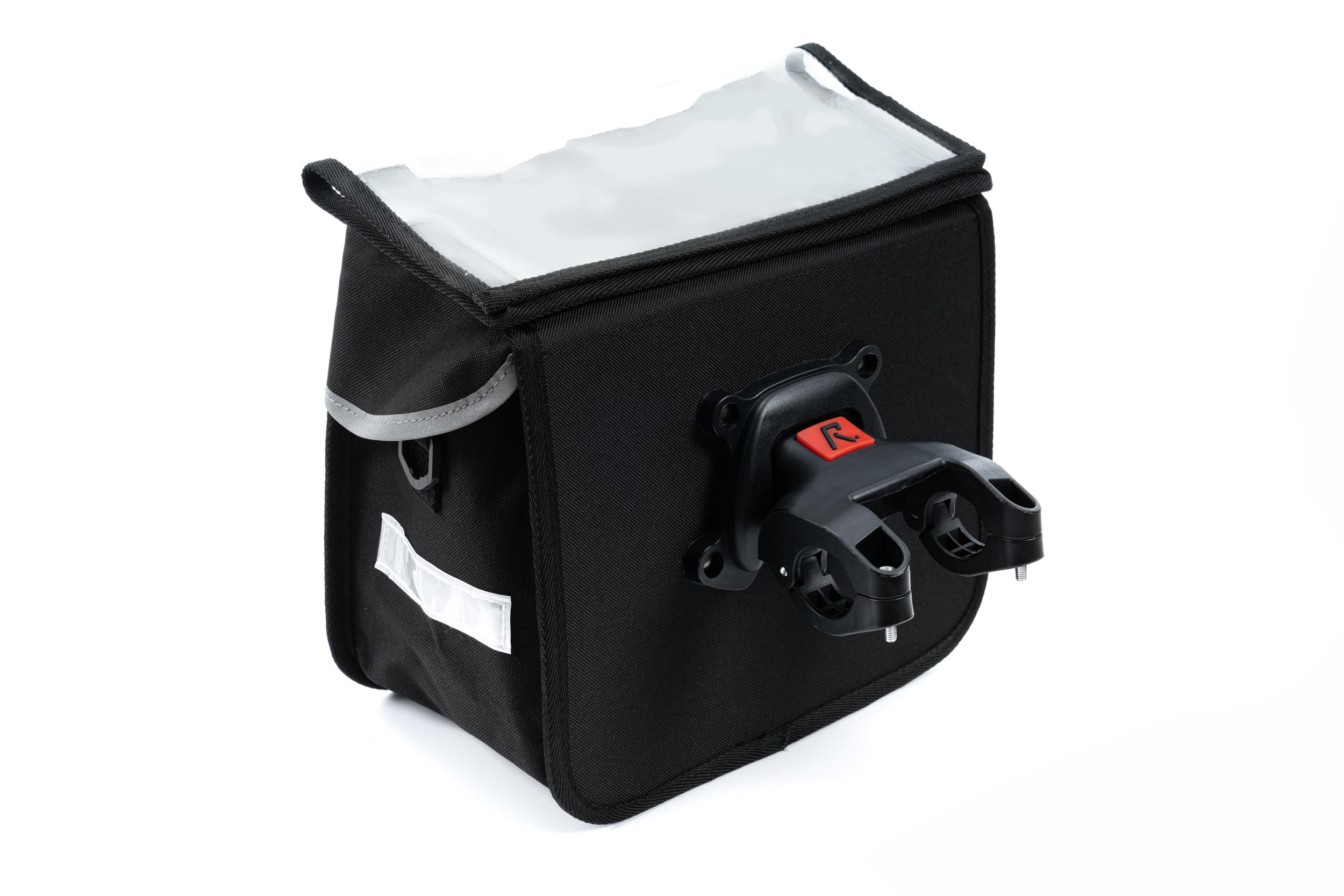 - Klick&Go bar-mounted system for effortless attachment/removal; reflective logo; suitable for a handlebar diameter of 25.4 - 31.8 mm; carrying handle and shoulder strap