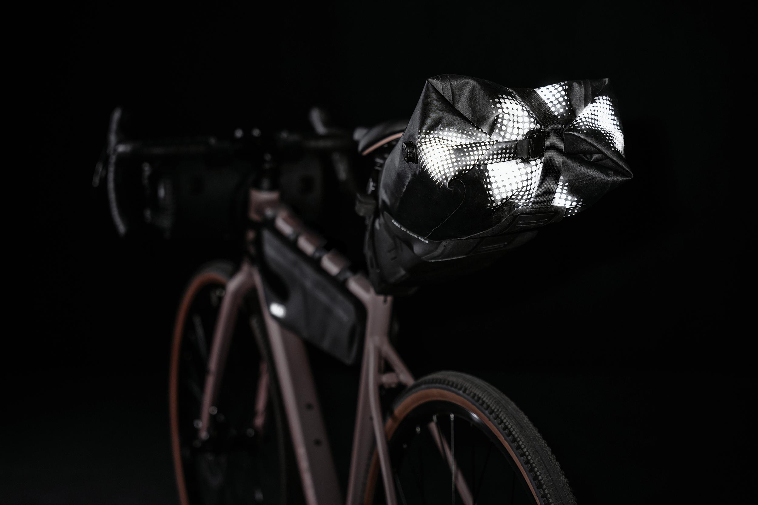 From micro adventures to multi-day or -week bikepacking tours, the ACID PACK PRO 11 was developed in cooperation with experienced bikepackers. The two-piece system includes a harness and a waterproof dry bag with welded construction for maximum functionality. Using the flexible MOLLE system, the harness securely attaches to the saddle rails and seatpost where, once fitted, it can stay on for as long as you need. The rugged dry bag simply slots into the harness and fixes in place, and is just as quick to remove when shopping for supplies or when you've arrived at your destination for the evening. Another feature: an integrated air valve that allows the contents to compress down even further. Reflective details on both parts improve visibility on the roads in low-light conditions. There's also an attachment for mounting a tail light.