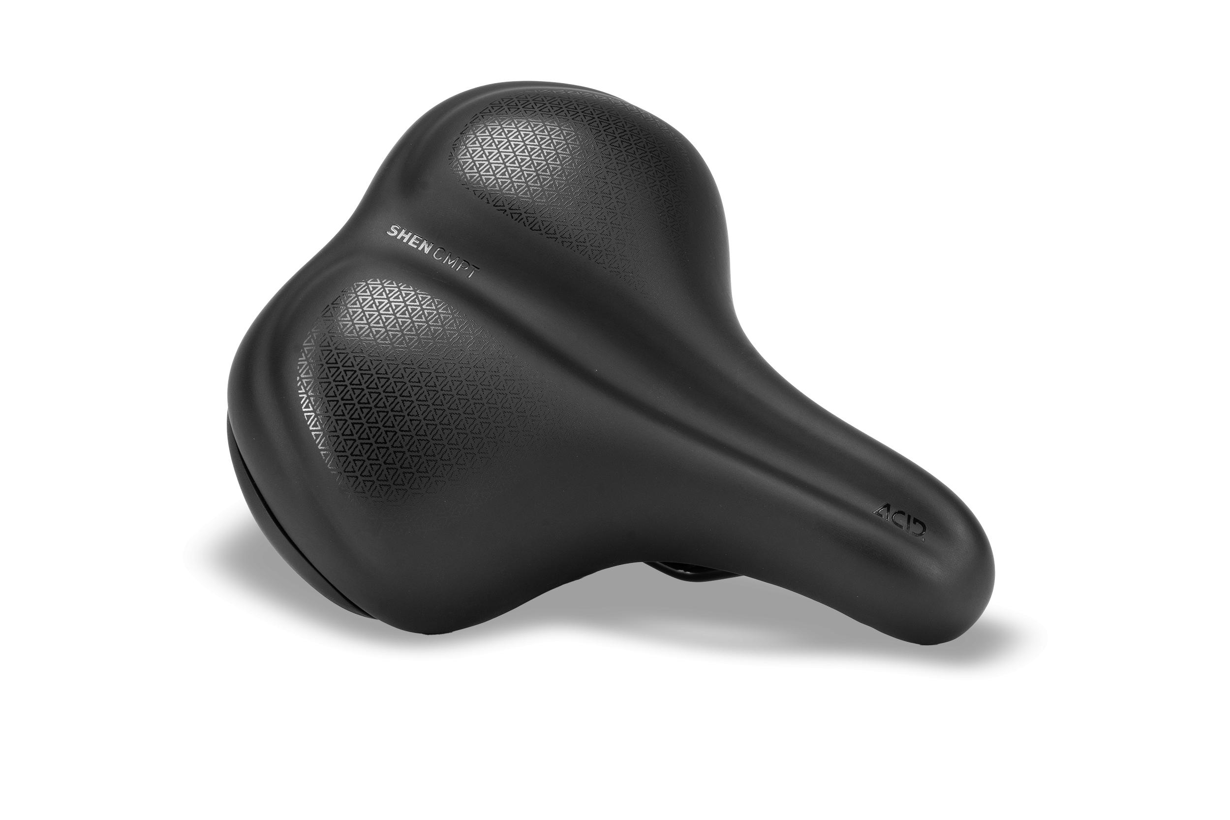 Designed especially for city cycling, the ACID SHEN CMPT saddle is designed to offer supreme cycling enjoyment on extended city tours. It’s our take on zero-compromise comfort, courtesy of a central ergo-relief channel and special hammock cuts beneath the sit bones to relieve pressure on the soft perineal tissue and the coccyx. The premium PU cover is both soft and durable, while the T-shaped saddle contour ensures maximum legroom for a smooth cycling experience. Optimised for an Upright riding position (saddle finder A).