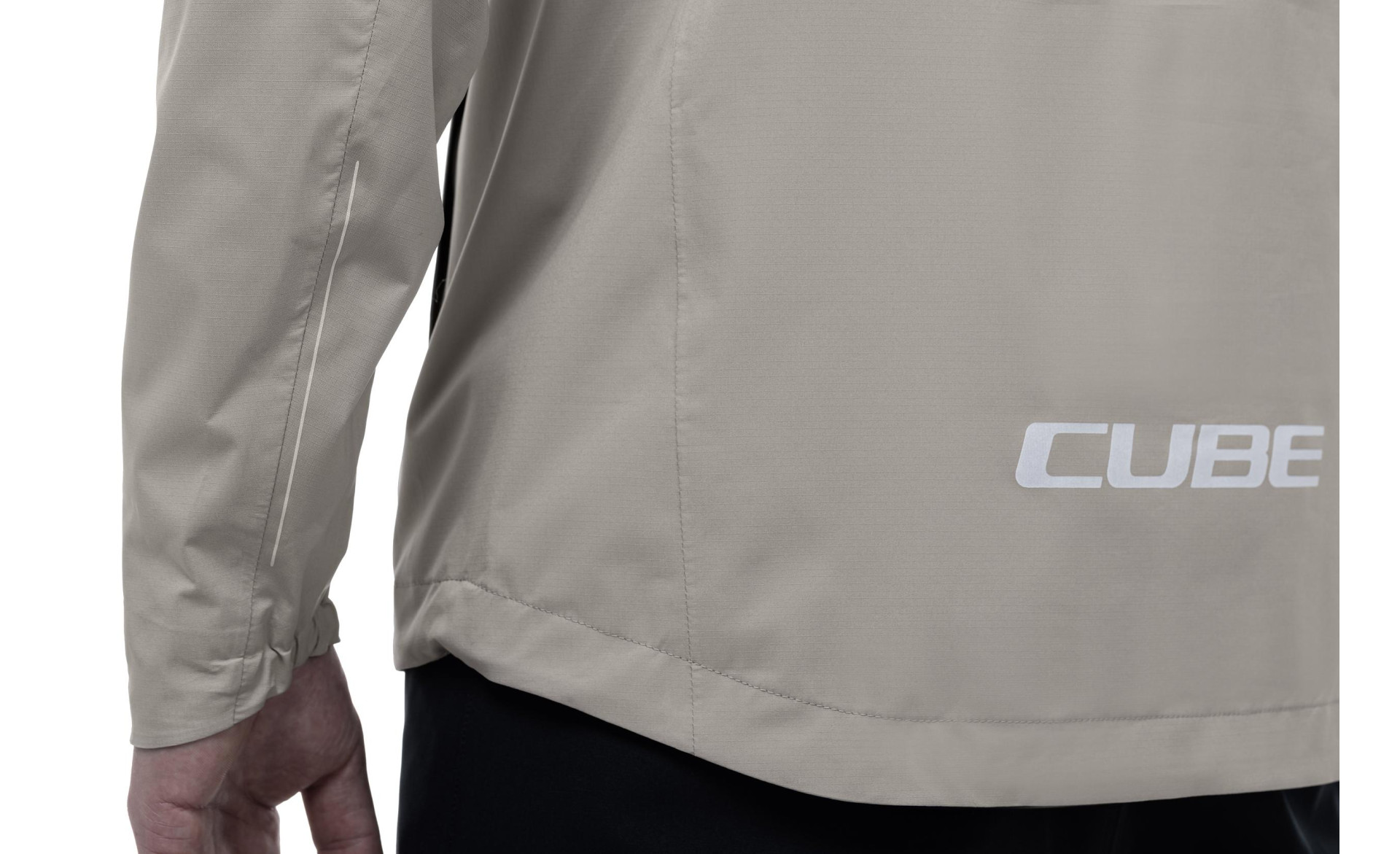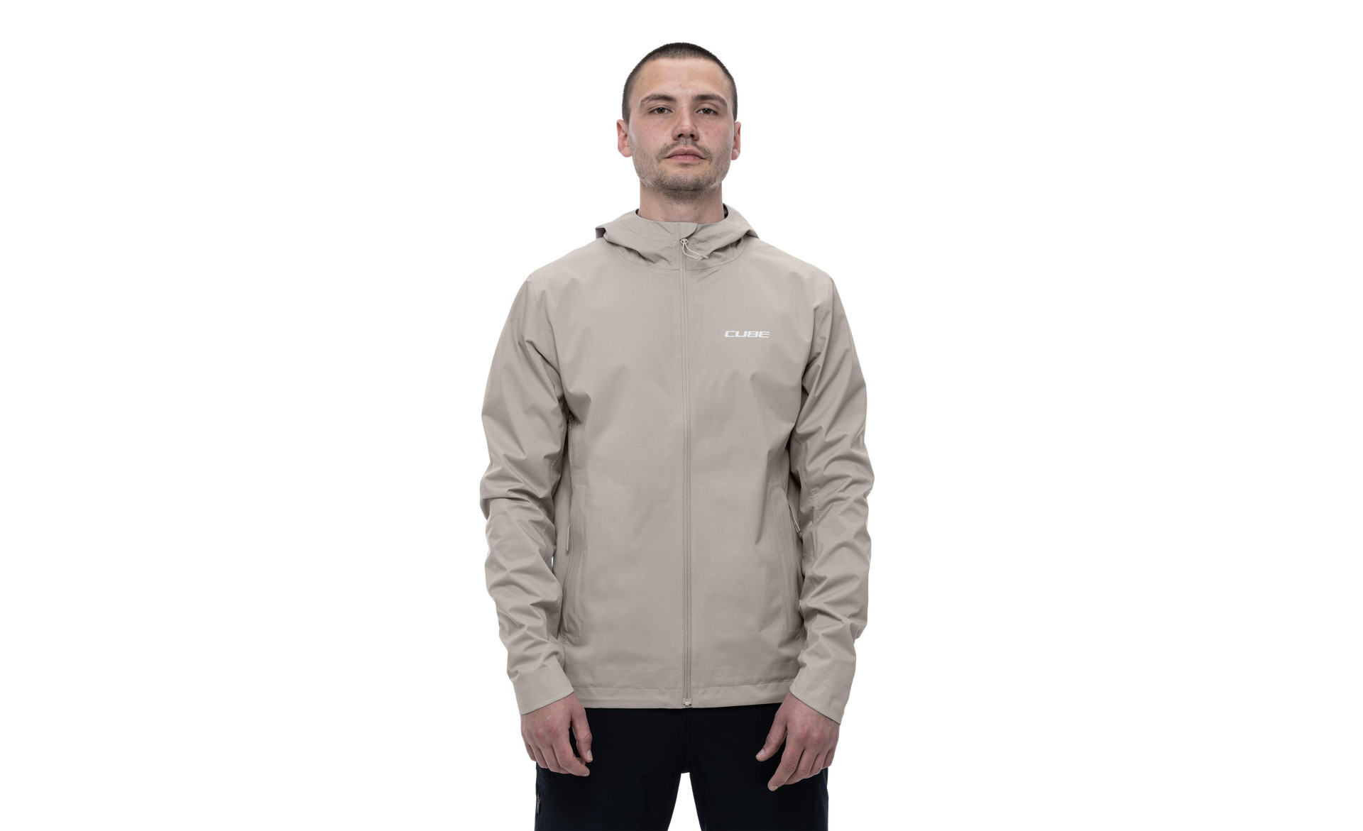 Our lightweight CUBE MTB Storm Jacket has had an update! This versatile all-rounder is ideal for mountain bikers and multi-sport fans alike. Now with an even higher waterproof rating, the waterproof and wind-proof technical fabric just got even better at protecting you from the rain for longer. Not only that, but the fabric is soft, stretchy and breathable – offering outstanding comfort for a jacket with such high waterproofing. Taped seams and a waterproof front zip stop water from leaking in at these critical points. Elastic drawstrings around the peaked hood and lower hem cinch tight to block out wind and rain. All in all a super-practical, lightweight jacket that packs down small into its own side pocket or hood.